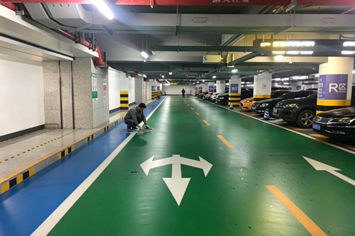 衡阳珠晖白渔潭园艺场停车场车库聚氨酯地坪施工厂家